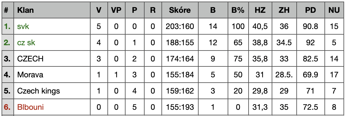 Tabulka celkového pořadí